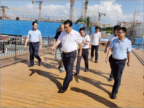 7月3日,市国资委主任陈朝芳到东站国际商业广场、海口椰风水韵北区项目现场调研