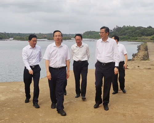 3月11日,省委副书记李军一行前往海口市南渡江龙塘大坝枢纽改造工程调研