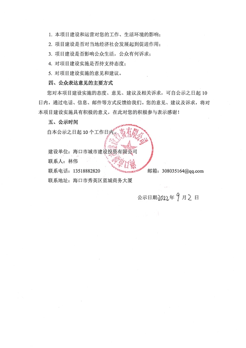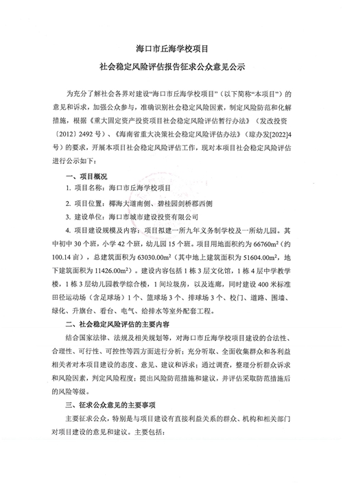 海口市丘海学校项目社会稳定风险评估征求意见